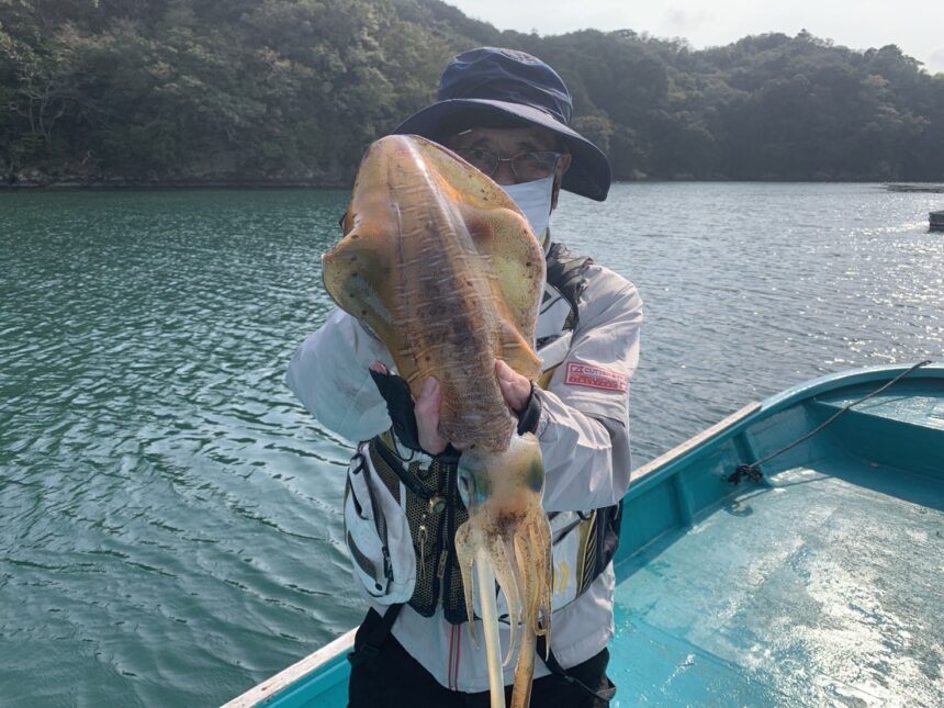 カセ釣りで東さんがアオリイカをばゲット。