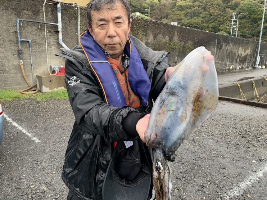 カセ釣りで森本さんがアオリイカ1.64キロをゲット。
