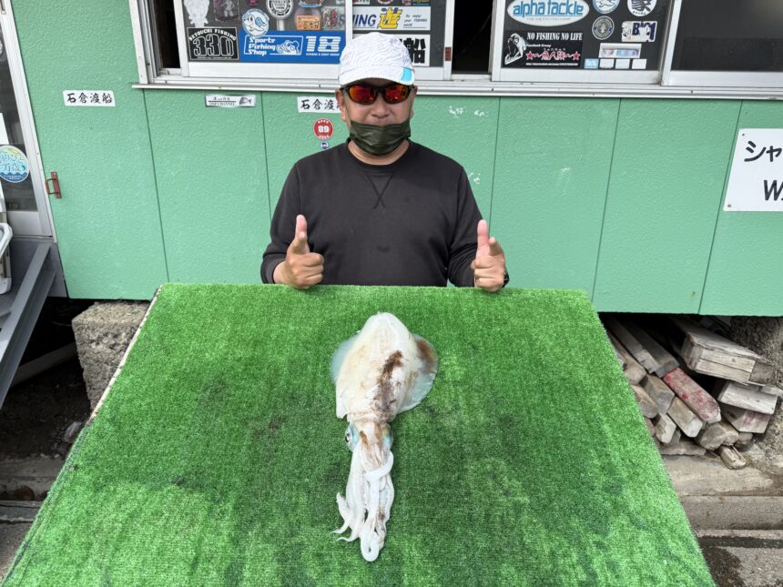 船外機ボートで西脇さんがアオリイカ、スミイカをゲット。