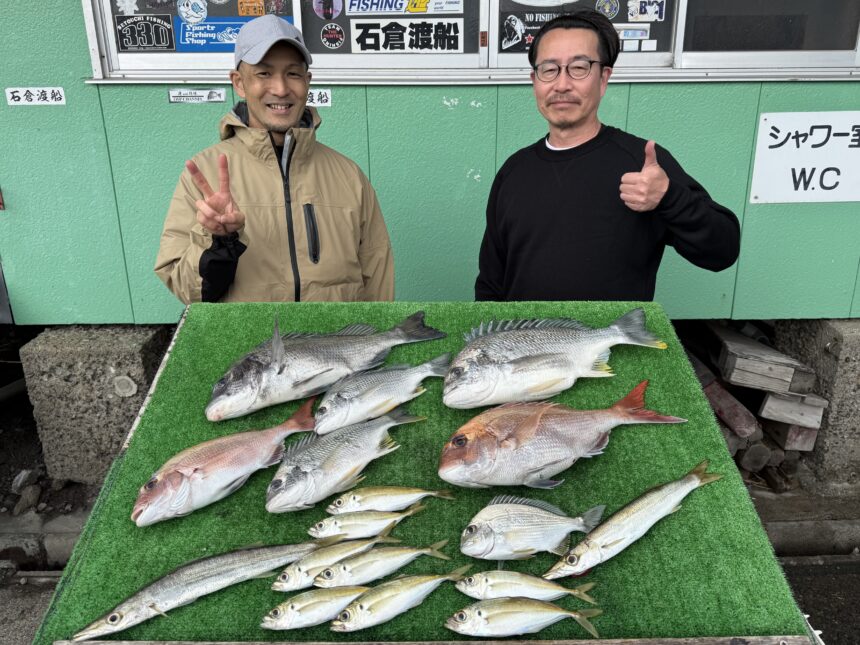船外機ボートで奥山さんがマダイ、キビレ、アジ、カマスをゲット。
