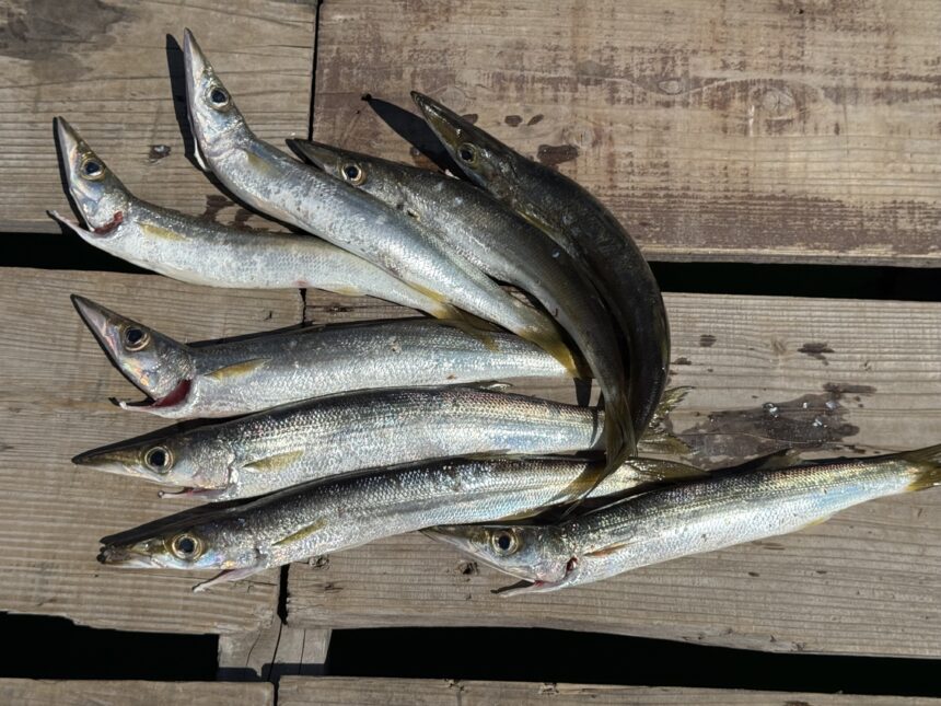 手漕ぎボートで重内さんがカマスをゲット。
