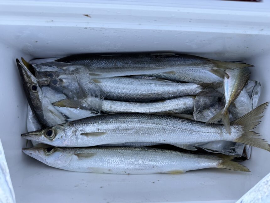 カセ釣りで匹田さんがカマス、アジをゲット。