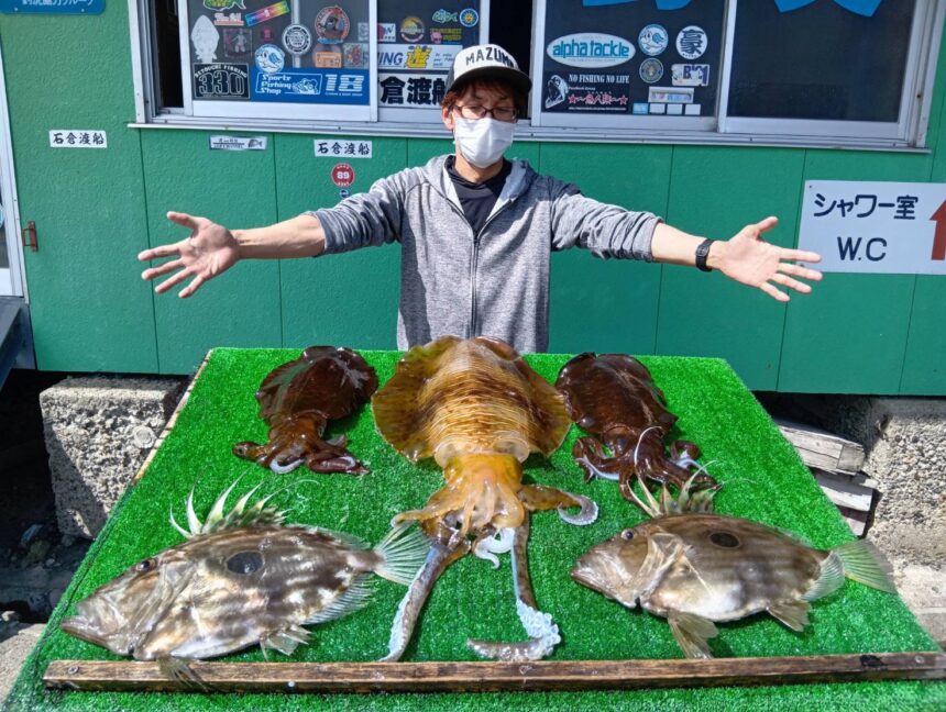 船外機ボートで畑野さんがアオリイカ2.46キロまでとマトウダイをゲット。