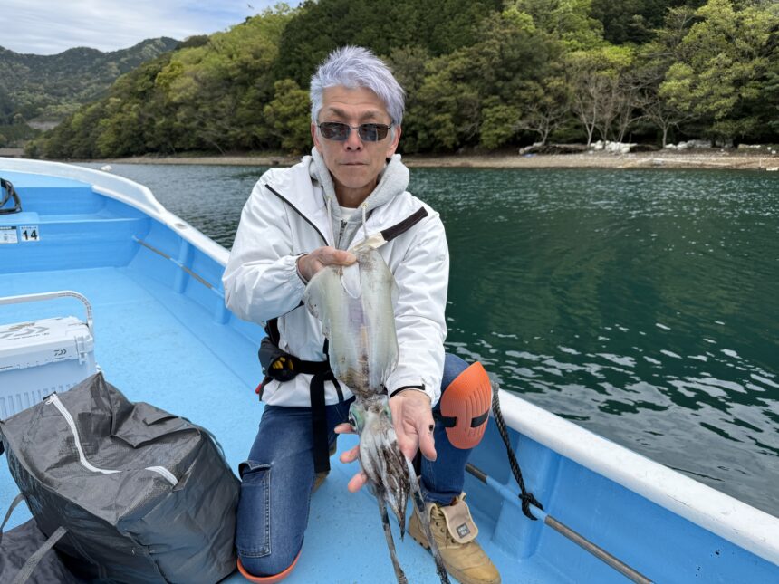 カセ釣りで浅井さんがアオリイカをゲット。