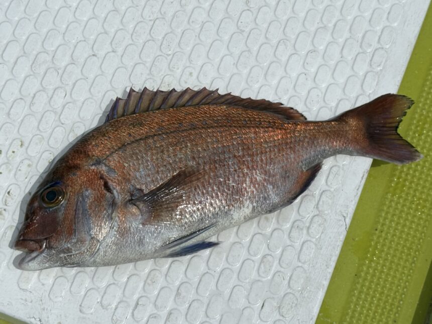船外機ボートで馬場さんがワラサ、マダイをゲット。