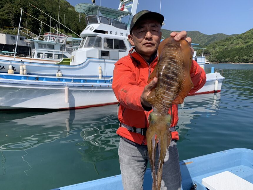 船外機ボートで村松さんがアオリイカ1.76キロまでゲット。