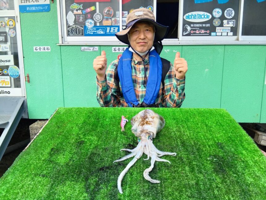 船外機ボートで小山さんがアオリイカ2.28キロまでゲット。