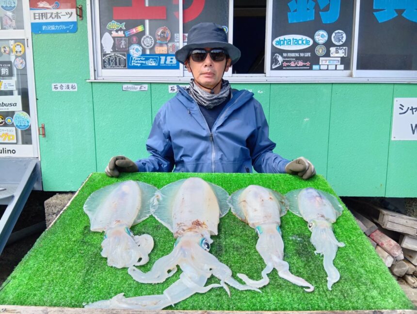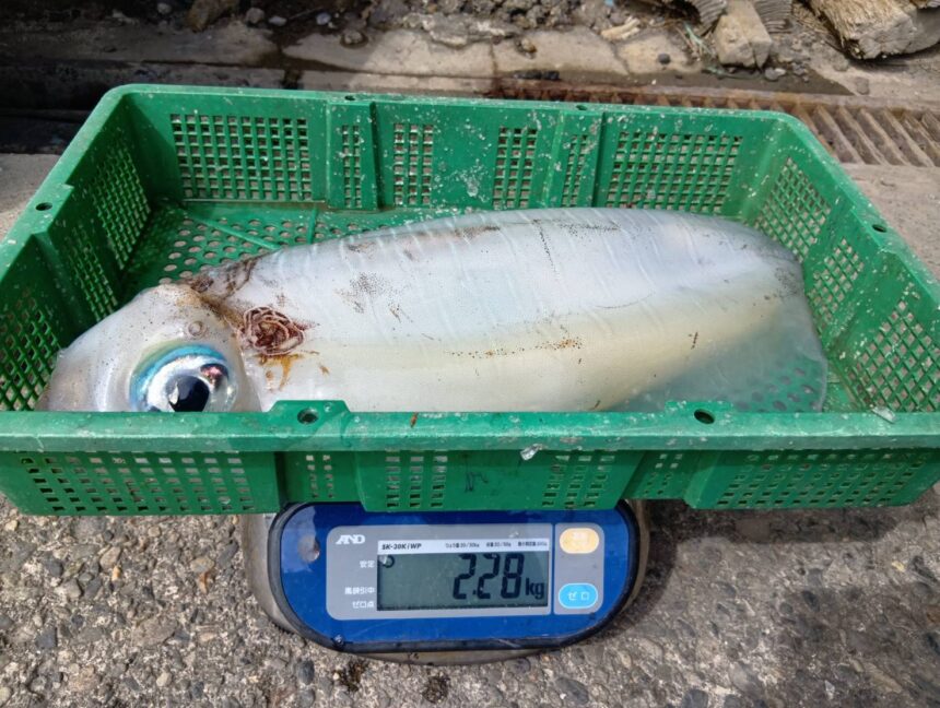 船外機ボートで小山さんがアオリイカ2.28キロまでゲット。