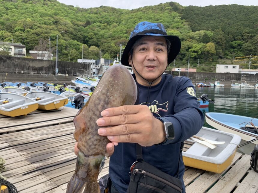 カセ釣りで小澤さんがアオリイカ1.34キロまでゲット。