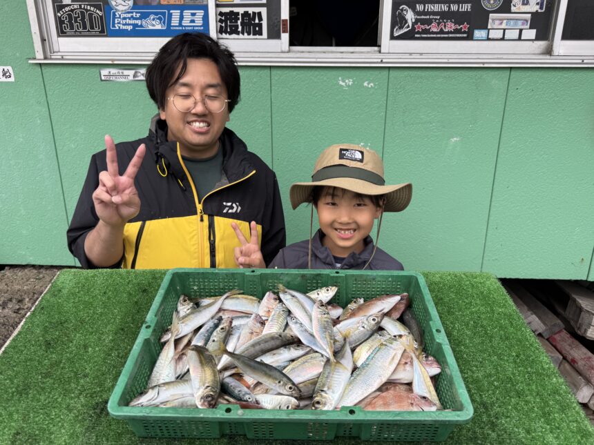 船外機ボートでチーム親父さんがアジをゲット。