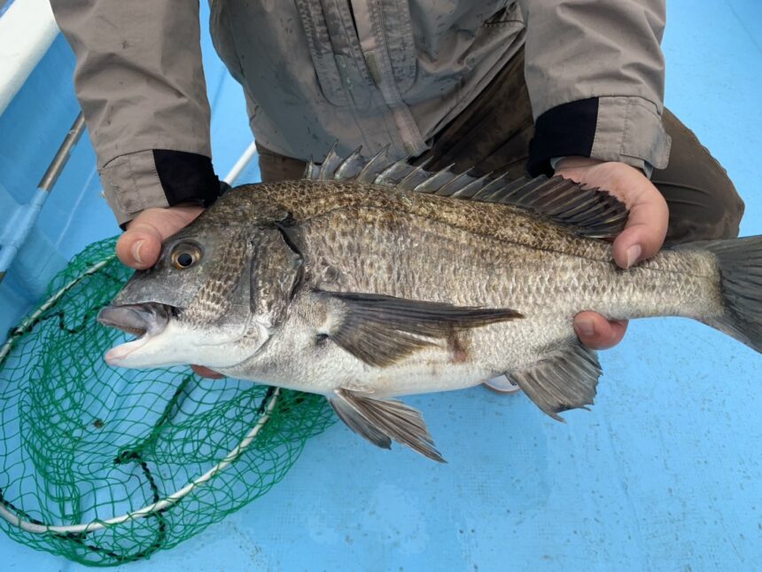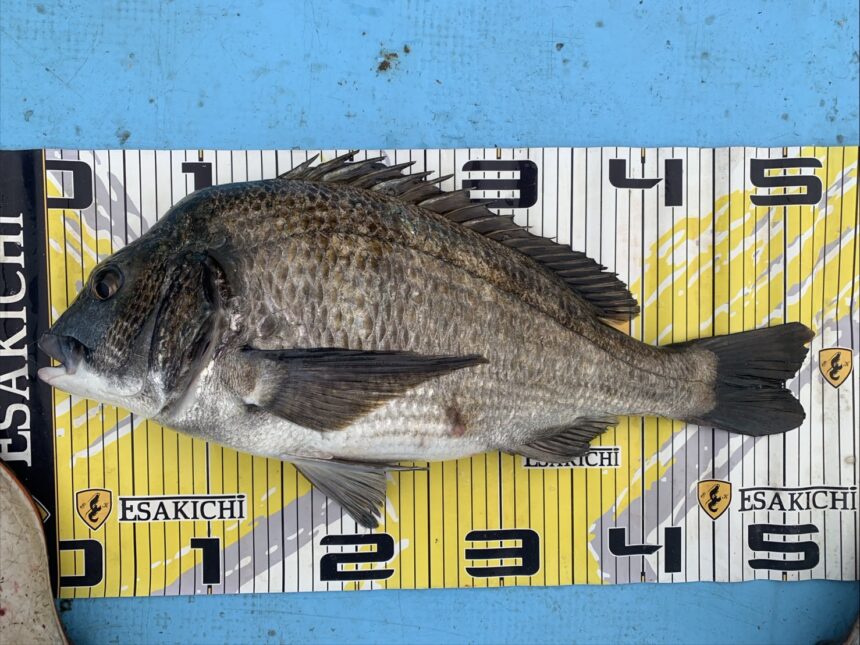 カセ釣りでテスターがチヌ52㎝をゲット。