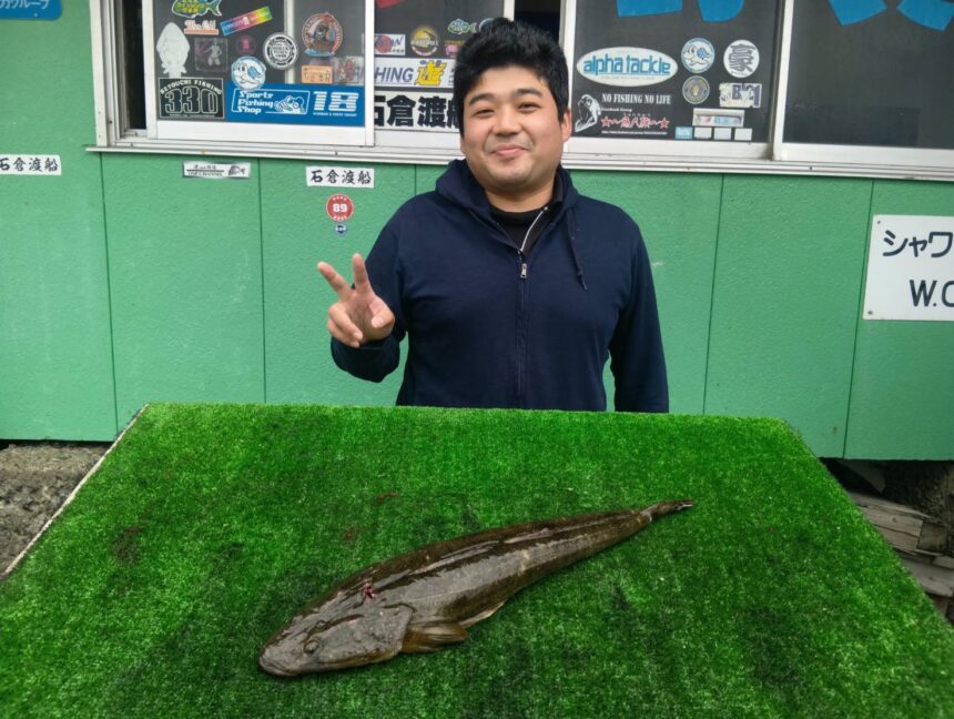 船外機ボートで油家さんがマゴチ50㎝をゲット。