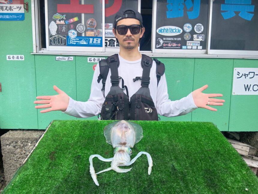 船外機ボートで岩月さんがアオリイカ1.44キロまでゲット。