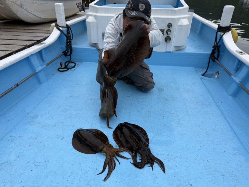 カセ釣りで間島さんがアオリイカをゲット。
