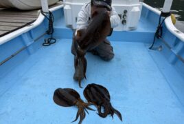 カセ釣りで間島さんがアオリイカをゲット。