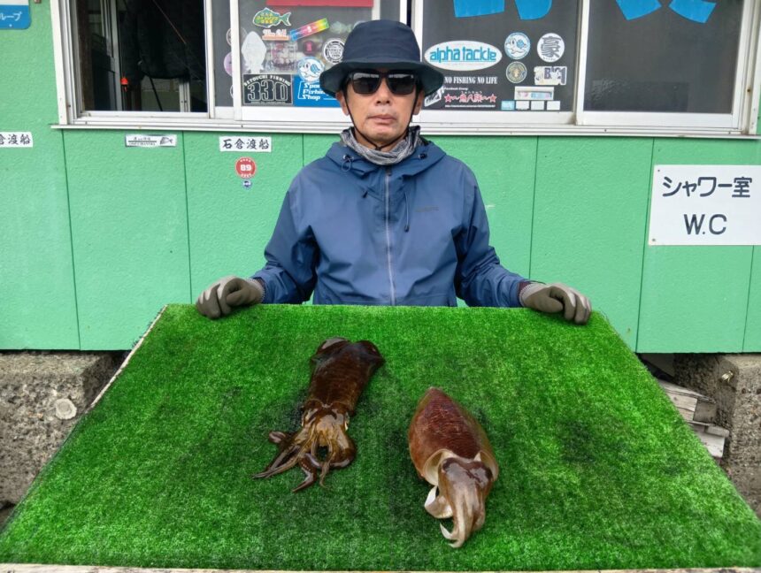 船外機ボートで小山さんがアオリイカ、スミイカをゲット。