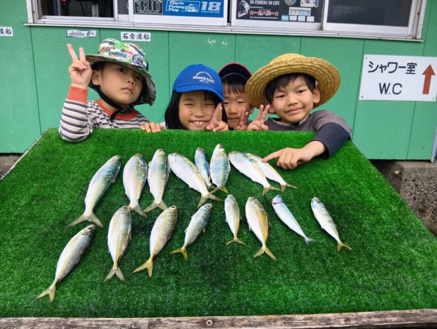 2026.04.26 UP ボート釣り釣果 船外機ボートでかなと君、めいちゃん、そうた君、いぶき君がアジ、カタボシイワシをゲット。 釣行日 2026年04月26日 釣り人 そうた君、めいちゃん、いぶき君、かなと君 コメント サビキ