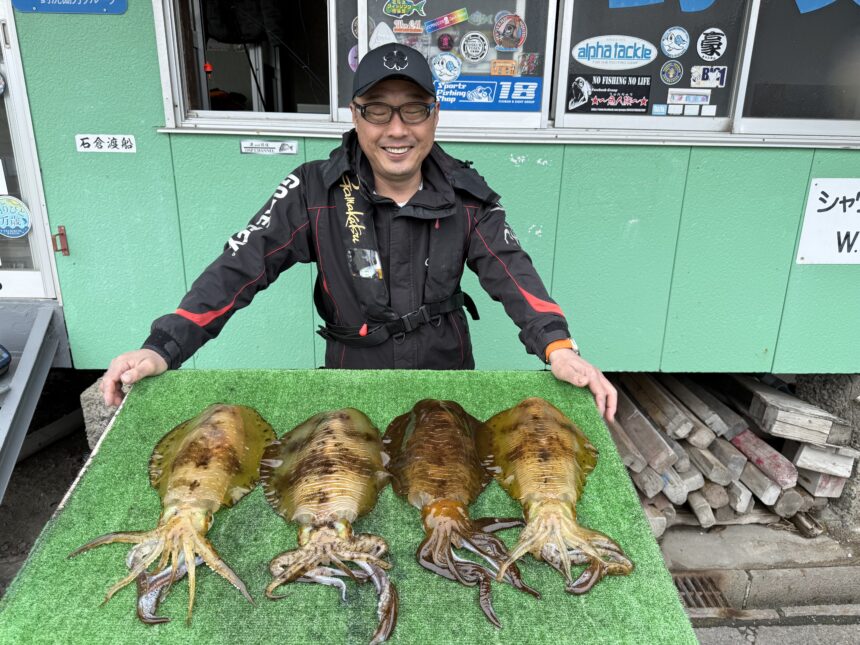 船外機ボートで康田さんがアオリイカ1.2キロまでゲット。