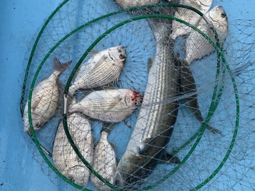 カセ釣りでAさんがヘダイ、ボラをゲット。