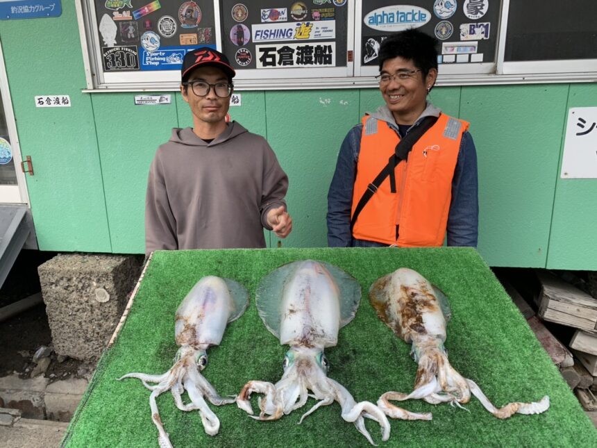 カセ釣りで栗田さんがアオリイカをゲット。