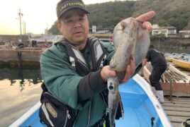 カセ釣りで大川さんがアオリイカをゲット。