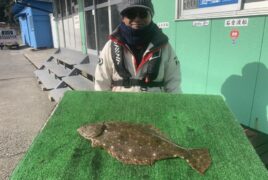 船外機ボートで西村さんがヒラメをゲット。