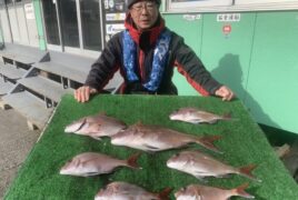 船外機ボートで水野さんがマダイをゲット。