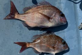 船外機ボートで北川さんがグレ&マダイをゲット。