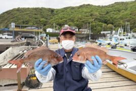 カセ釣りで森さんがグレ、ヘダイをゲット。