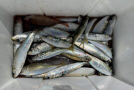 手漕ぎボートで小西さんがアジ、カタボシイワシ、マイワシをゲット。