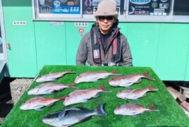 船外機ボートで小林さんがイシダイ、マダイ、ワラサをゲット。