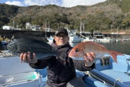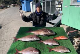 船外機ボートで海苔さんがマダイ、グレをゲット。