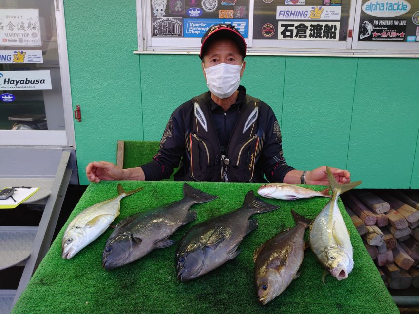半夜釣りで鳥井さんがグレ45cmまでとシマアジ、イサキをゲット。