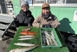 船外機ボートで長谷川さんがアカハタ、マトウダイ、カマス、エソ、アジをゲット。