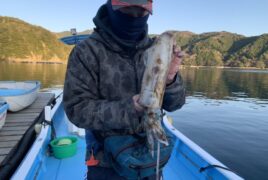 カセ釣りです宮坂さんがアオリイカをゲット。