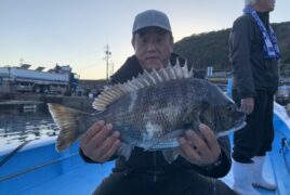 カセ釣りで加藤さんがチヌ49㎝をゲット。