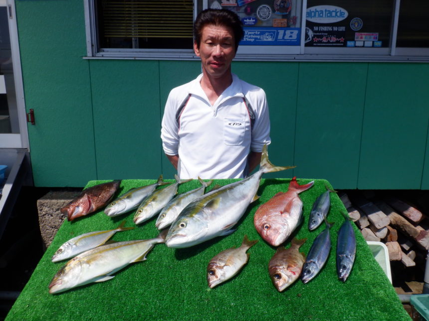 船外機ボートで中林さんがマダイ、ハマチ、シオ、ムロアジ、メイチをゲット。