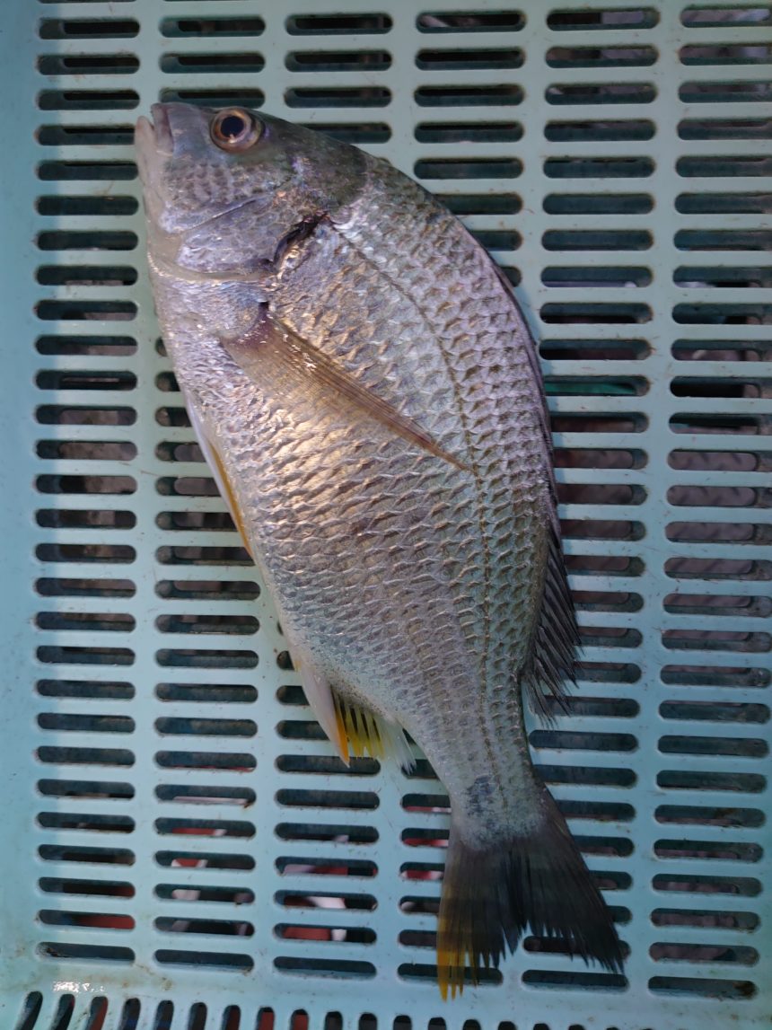 カセ釣りで谷口さんがチヌをゲット。