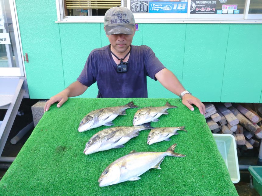 カセ釣りで小倉さんがチヌ38cmまでとシオをゲット。