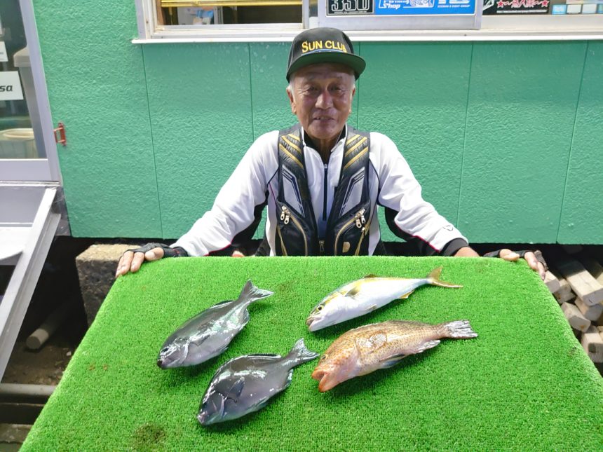 半夜釣りで黒川さんがグレ、ツバス、オオモンハタをゲット。