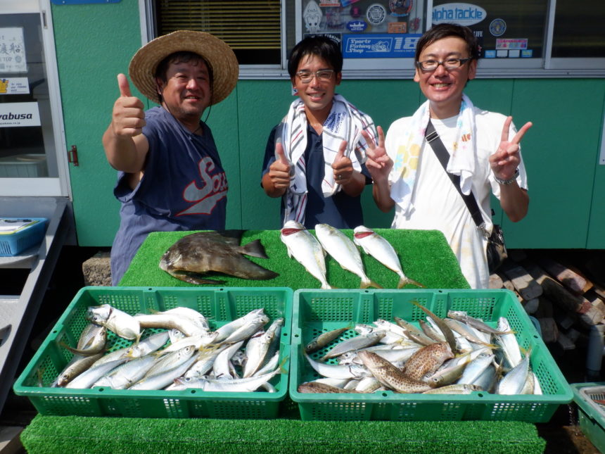 船外機ボートで岩本さんがツバス、アジ、サバをゲット。