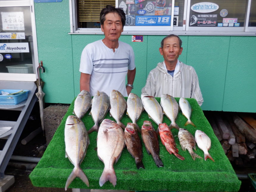 船外機ボートで別保さんがシオ、マダイ、オオモンハタをゲット。