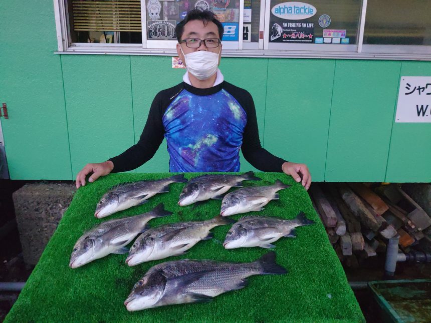 カセ釣りで下堂薗さんがチヌ46cmまでゲット。