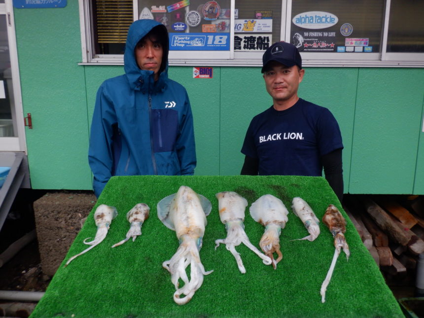船外機ボートで井上さんがアオリイカ1.08kgまでゲット。
