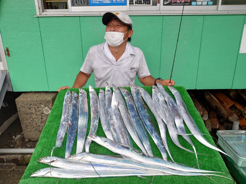 船外機ボートで吉田さんがアオリイカ、ツバスをゲット。