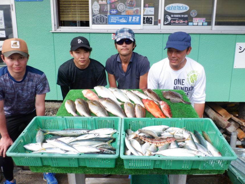 船外機ボートで宮崎さんがイサキ、ツバス、アジ、サバをゲット。