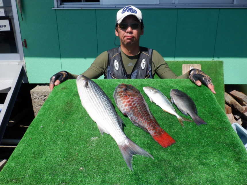 磯釣りで千田さんがイガミ、グレ、ボラをゲット。