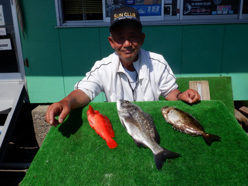 磯釣りで東さんがチヌ、アカハタ、アイゴをゲット。