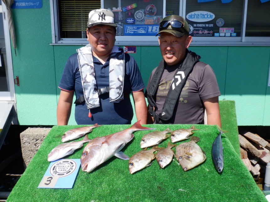船外機ボートで藤巻さんがシマアジ、メイチ、ツバス、イサキをゲット。