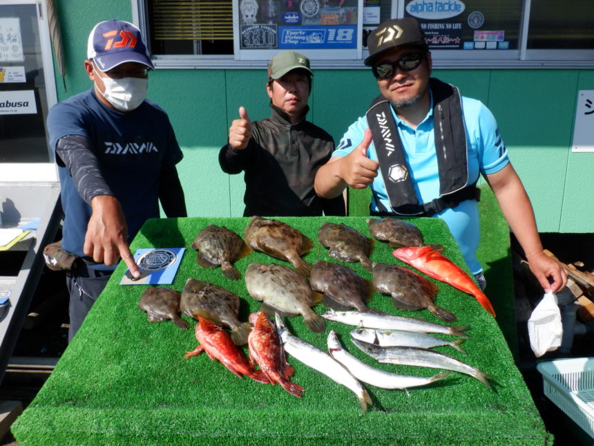 船外機ボートでチーム落水さんがカワハギ、アカハタをゲット。